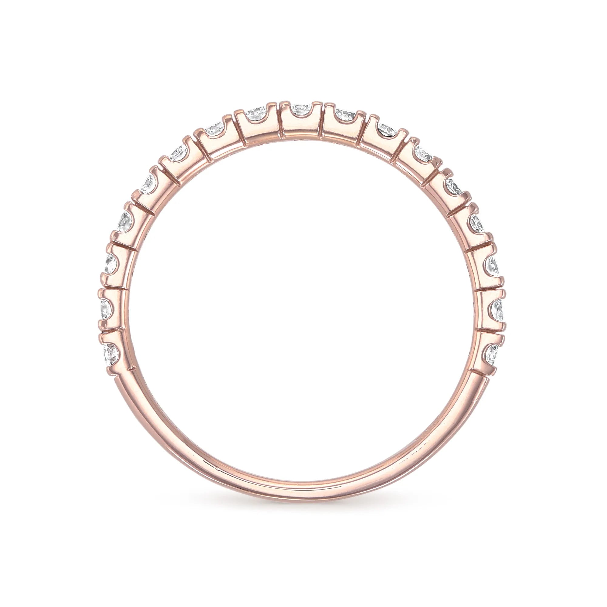 最も輝きをとり入れるラウンドブリリアントカットのダイヤモンドを17石と多めにほどこすことにより、どの角度からみても美しく見えるよう仕上げました。