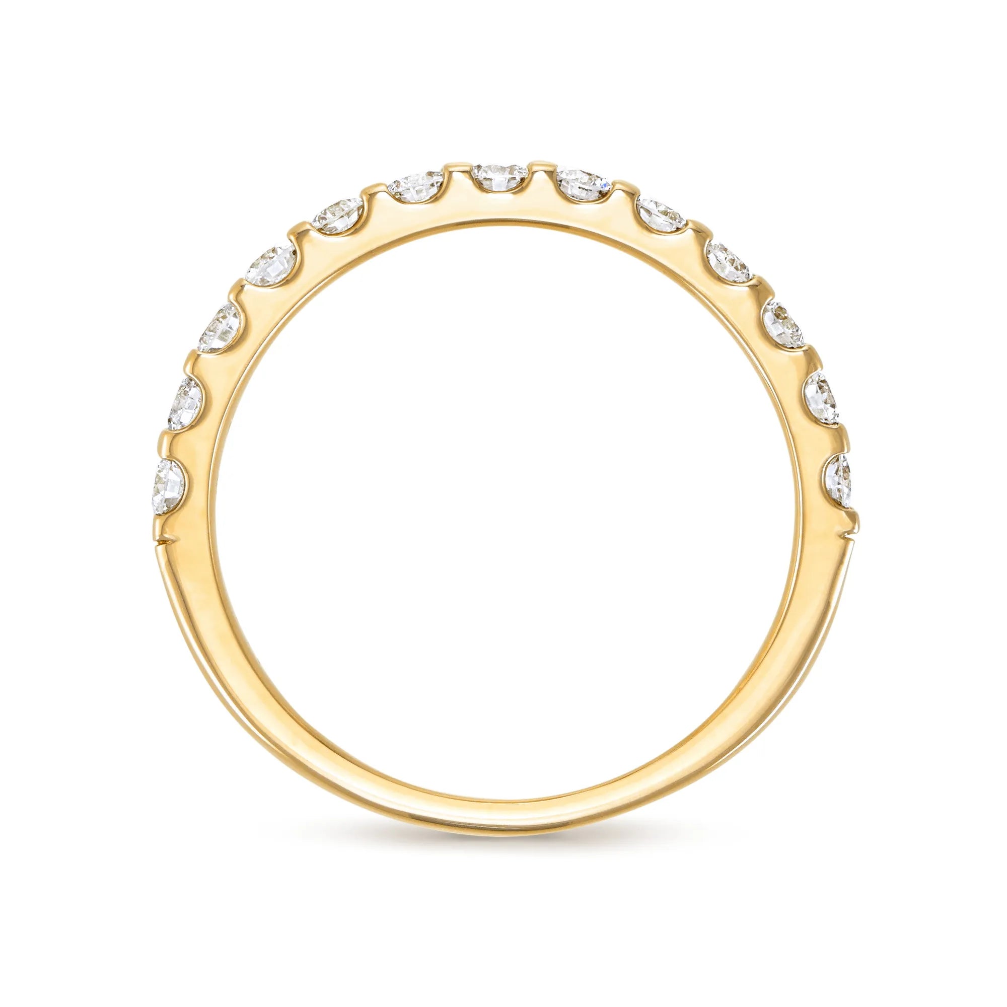 最も輝きをとり入れるラウンドブリリアントカットのダイヤモンドを13石と多めにほどこすことにより、どの角度からみても美しく見えるよう仕上げました。