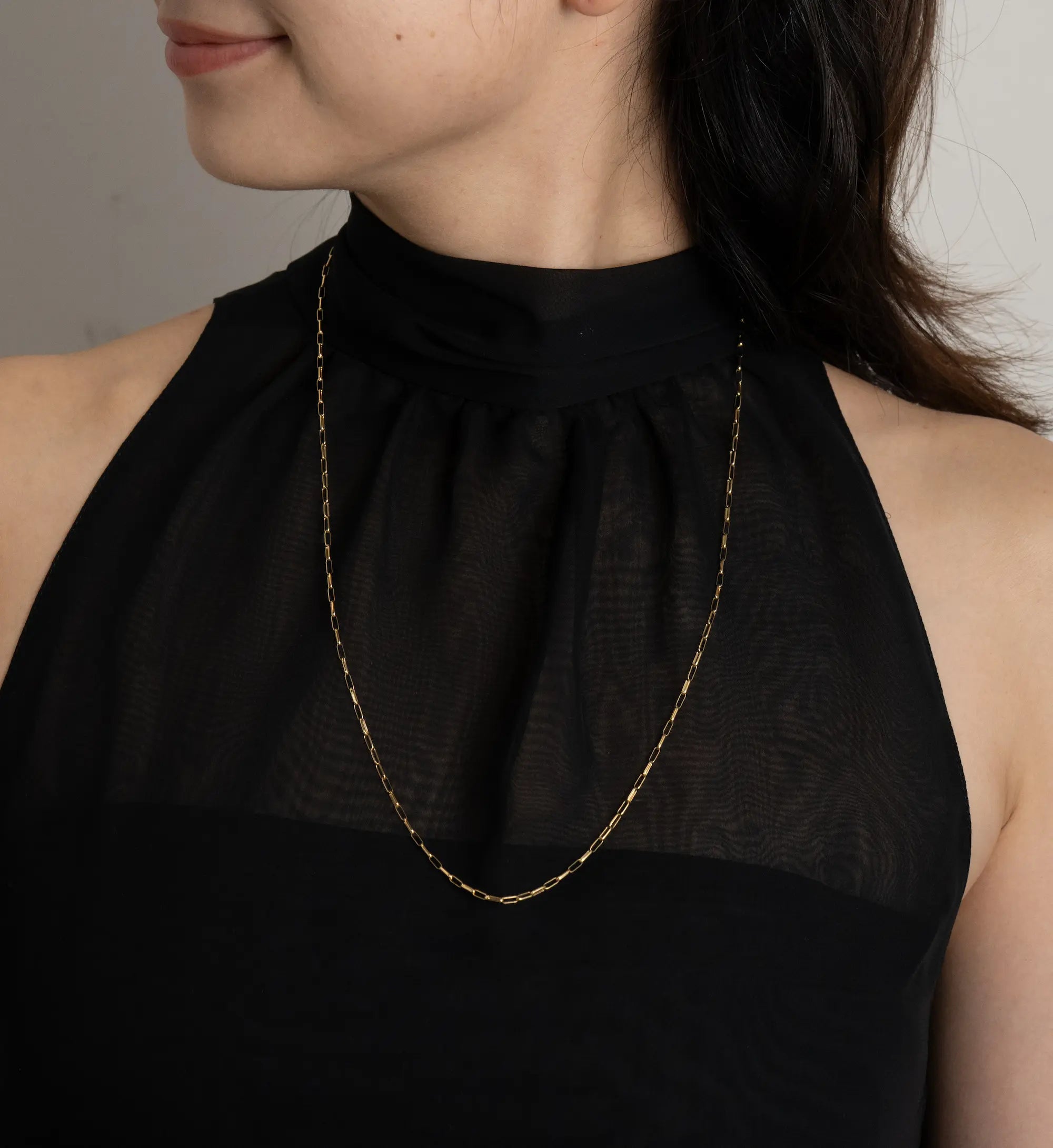 高級感のある上品なデザインが魅力のK18チェーンネックレス。18金ならではの輝きが、華やかで洗練された印象を与えます。