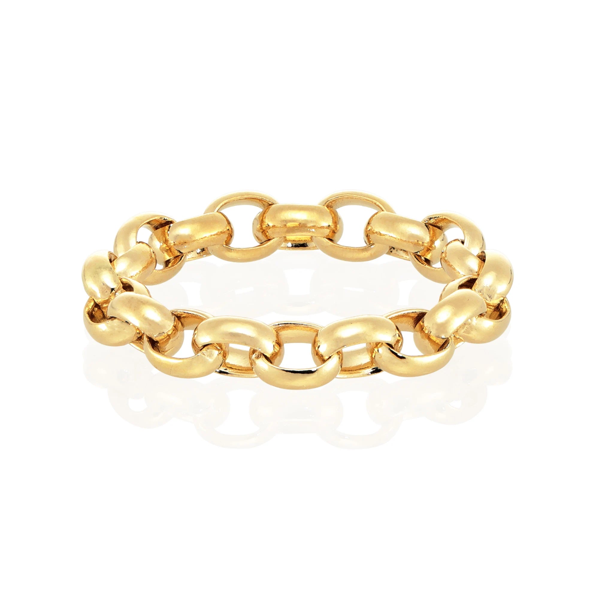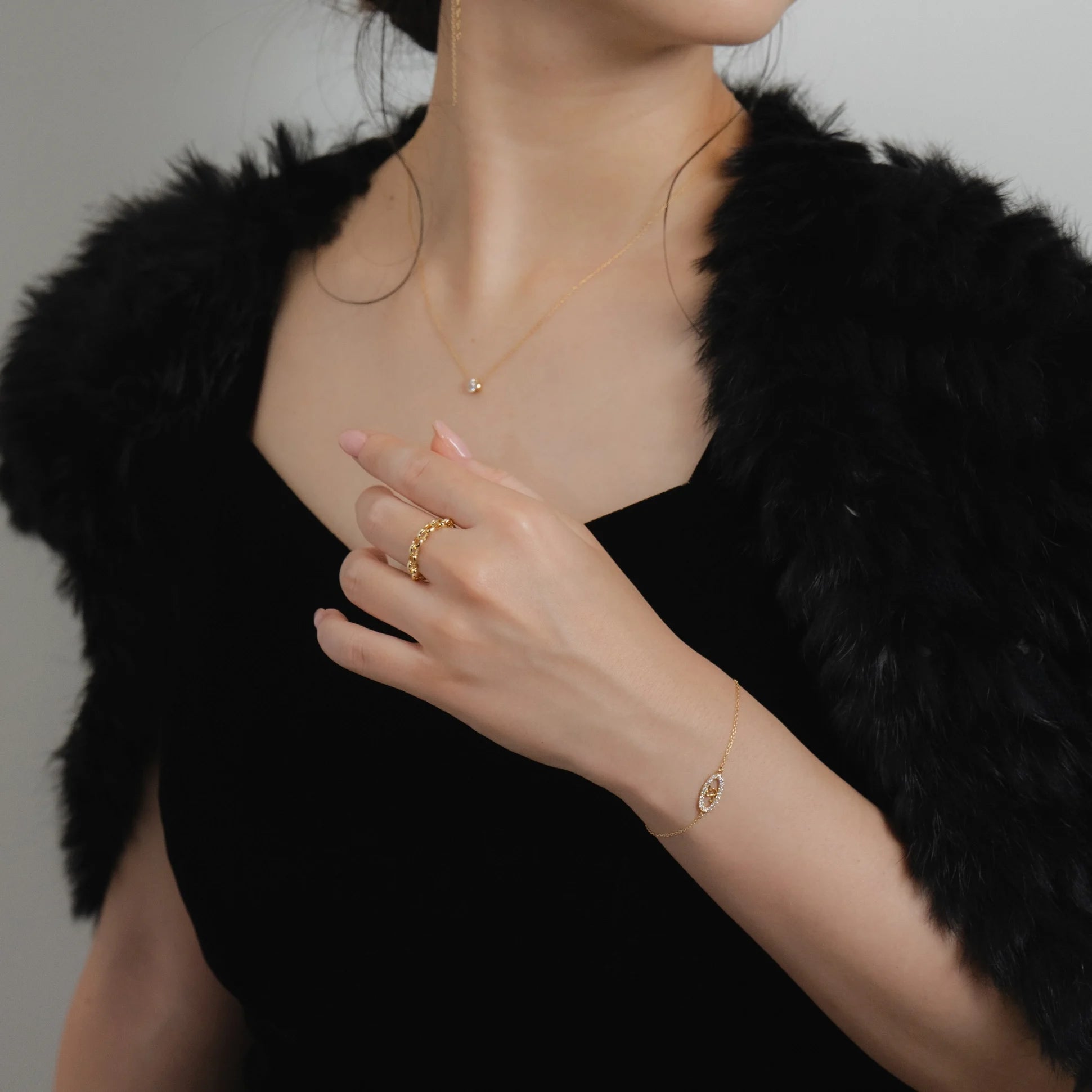 重厚なチェーンがシンプルながらも存在感を十分に発揮します。K18の温かみのある色合いが指元を引き立てます。