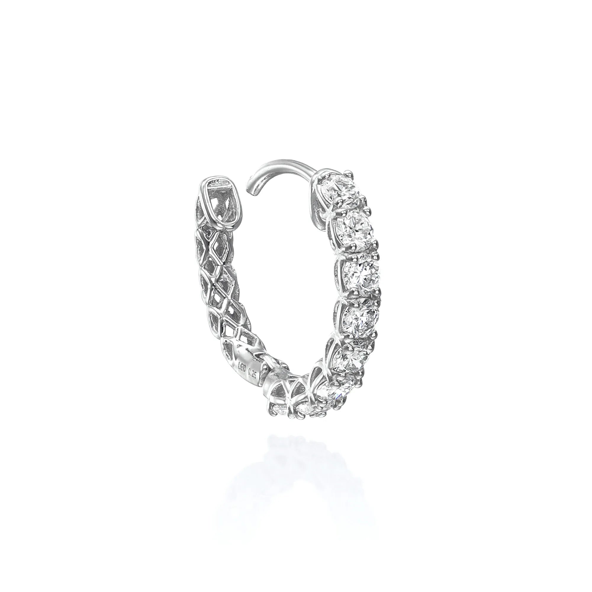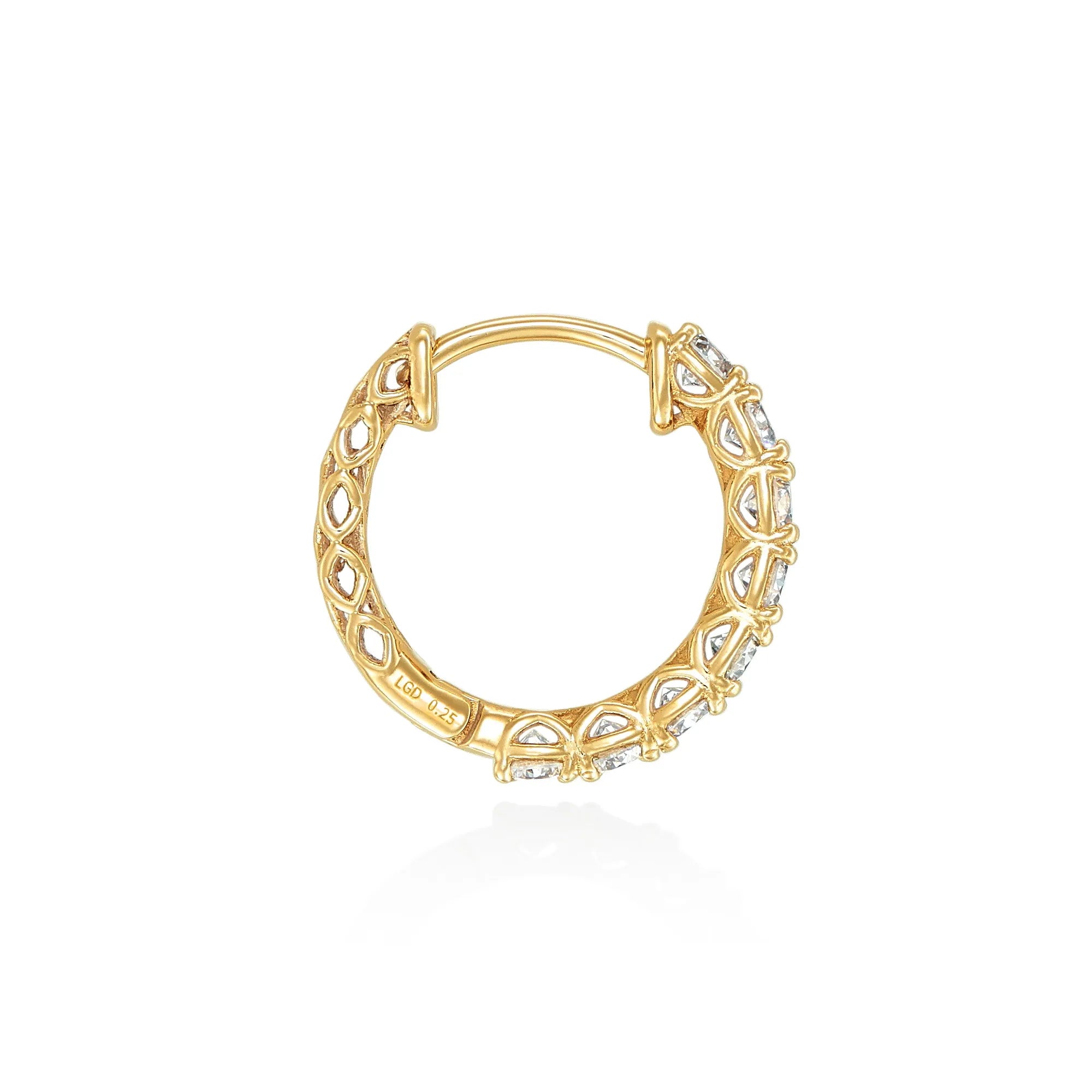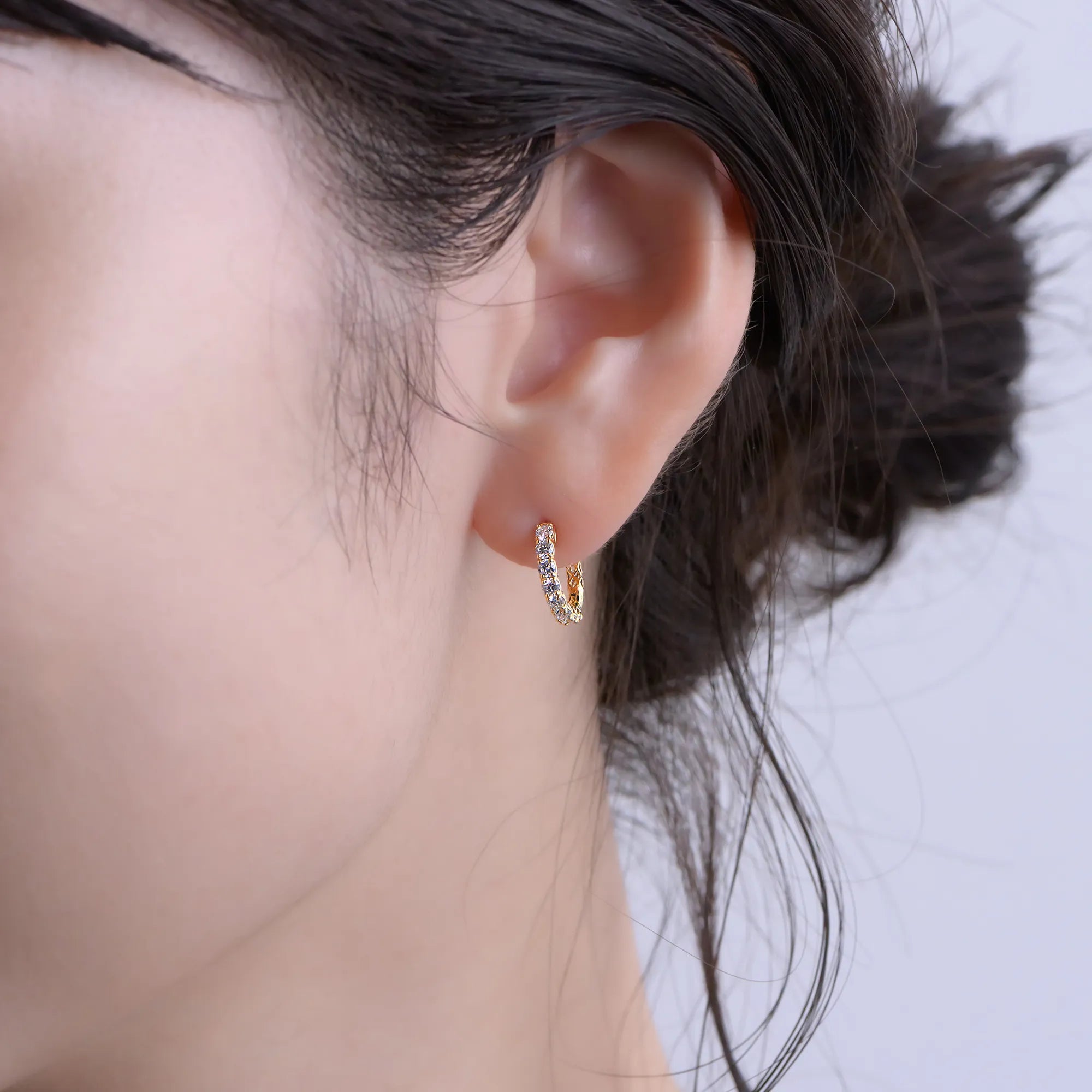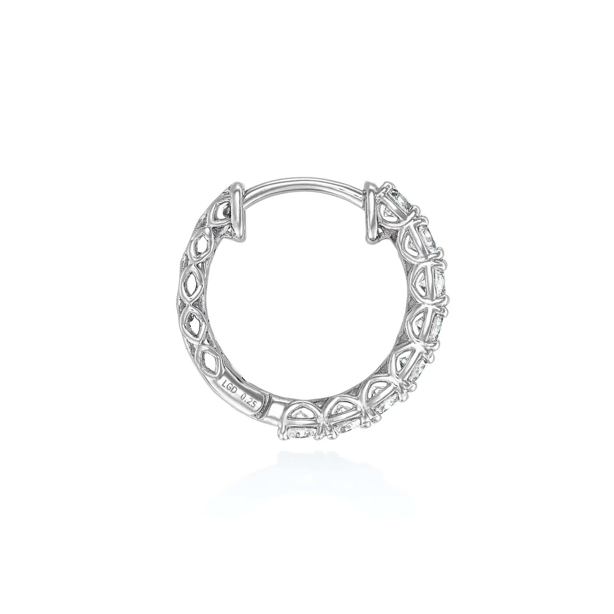このダイヤモンドフープピアスは、日常のさまざまなシーンで活躍し、特別な場にもふさわしい高級感あるデザインとなっています。ゴルフやピラティスなど軽いスポーツの時などにも大活躍するフープピアスです。