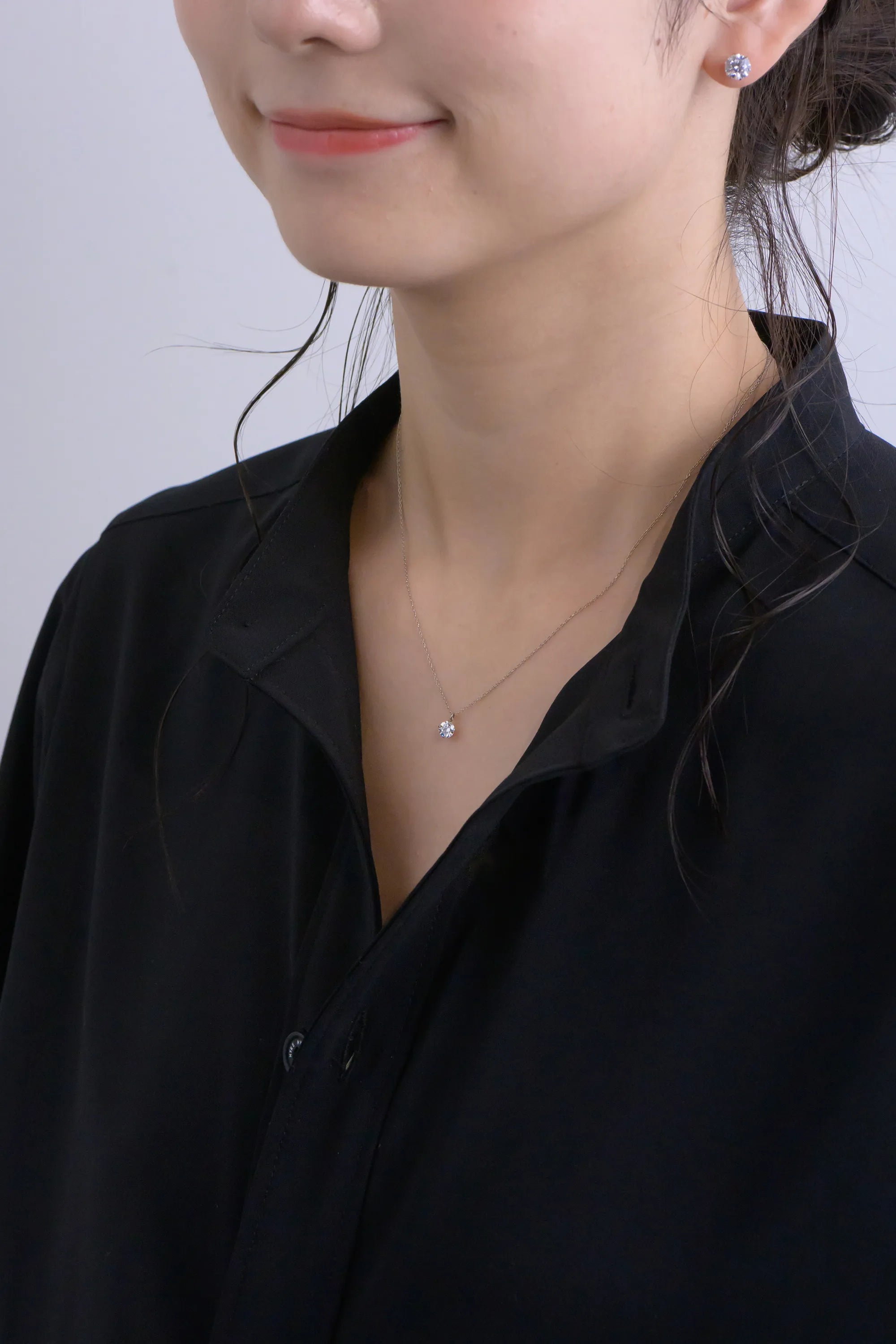 胸元にキラッと一粒のダイヤモンドの輝きが日常を豊かにします。年齢問わず長くご愛用いただけます。