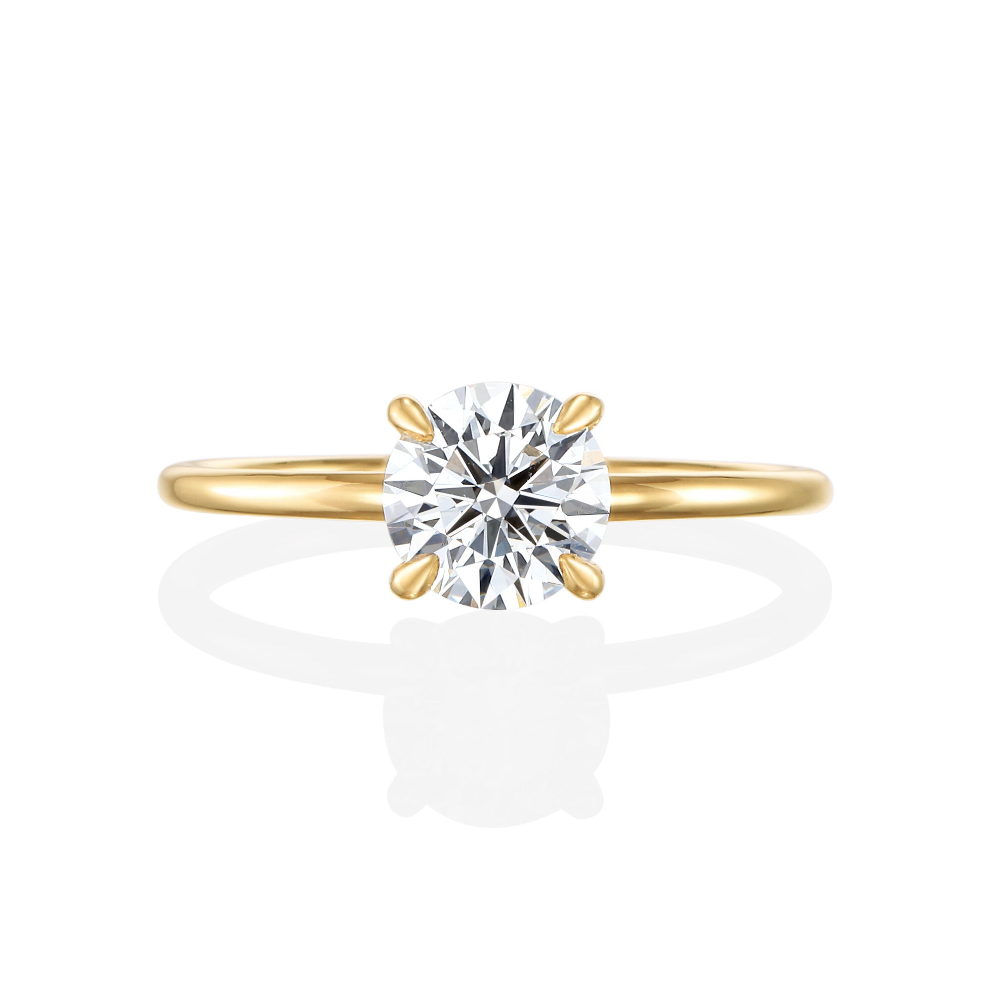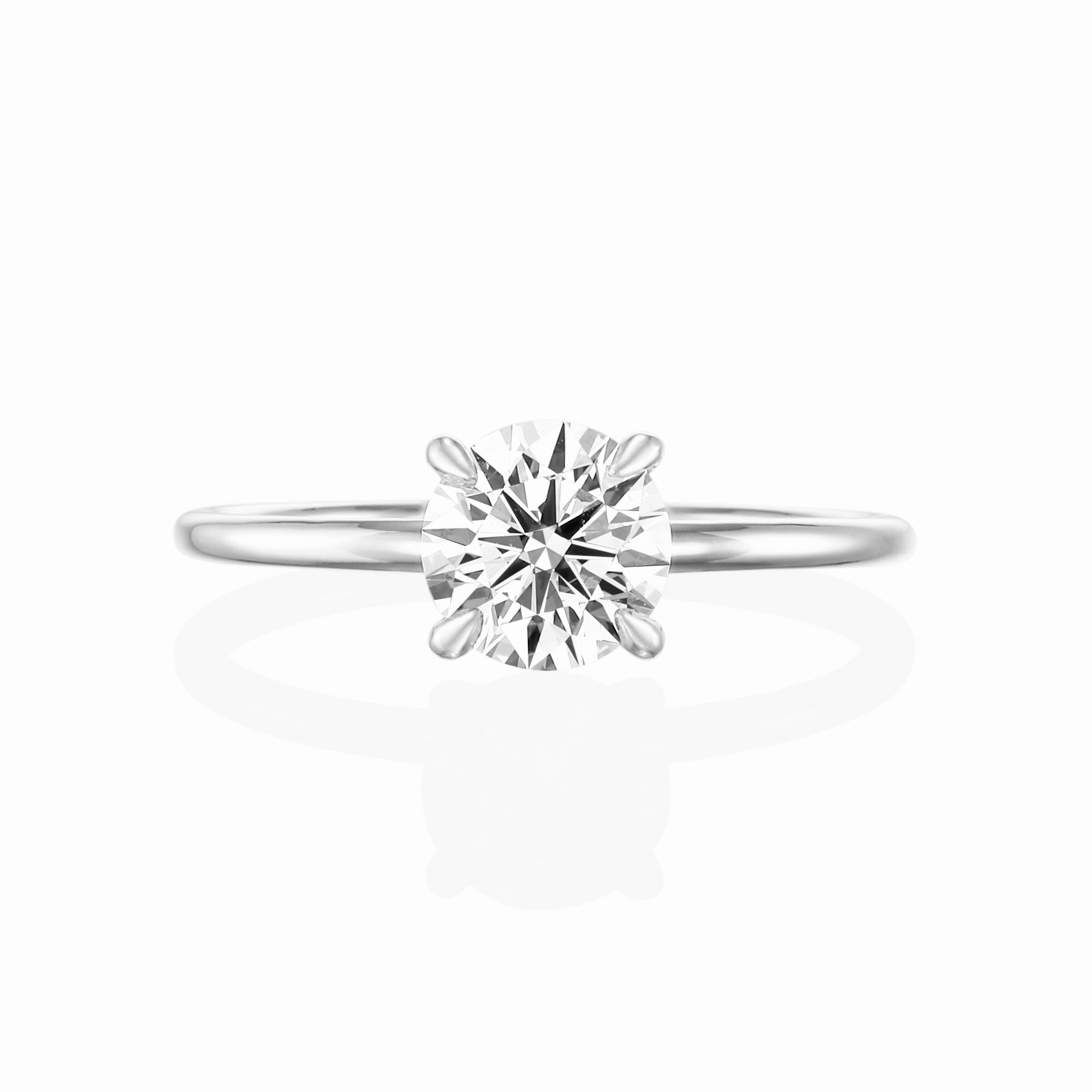 洗練されたデザインのダイヤモンドリングは、特別な日にふさわしい一品です。世界基準の最高級1カラットのラボグロウンダイヤモンドを使用し、光を最大限に引き出すラウンドブリリアントカットで仕上げられています。爪留めのスタイルは、ダイヤモンドそのものの美しさを存分に際立たせ、力強くも繊細な印象を与えます。