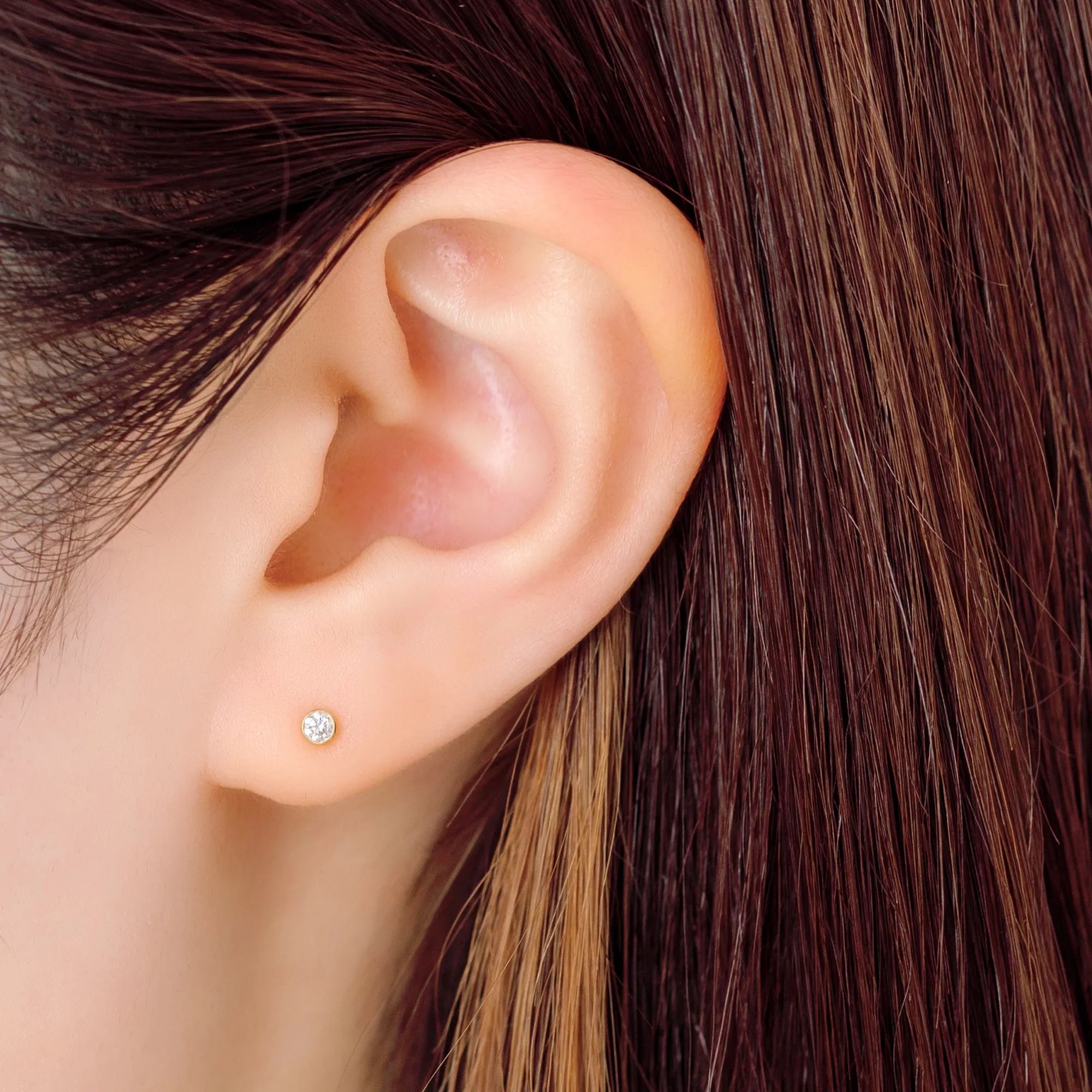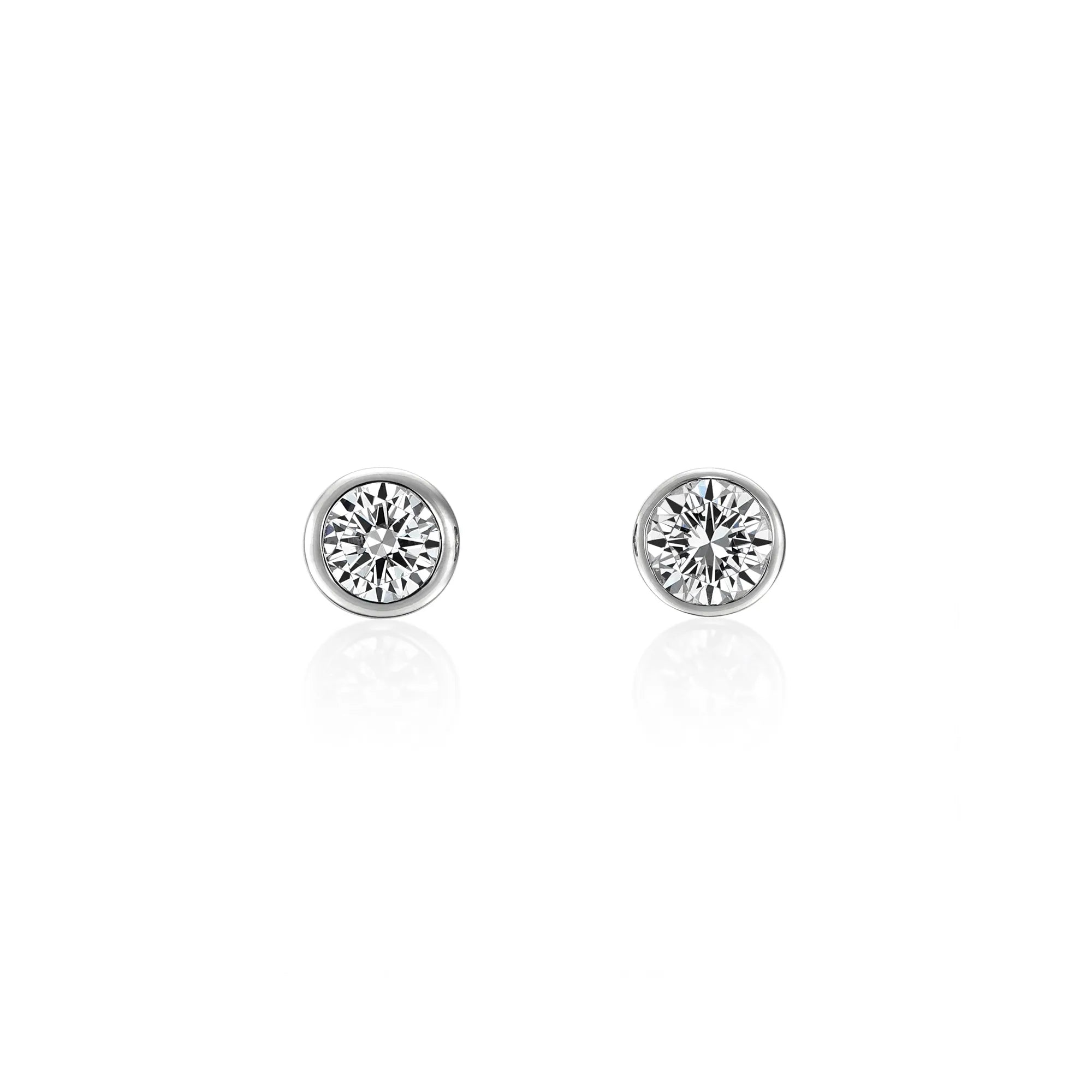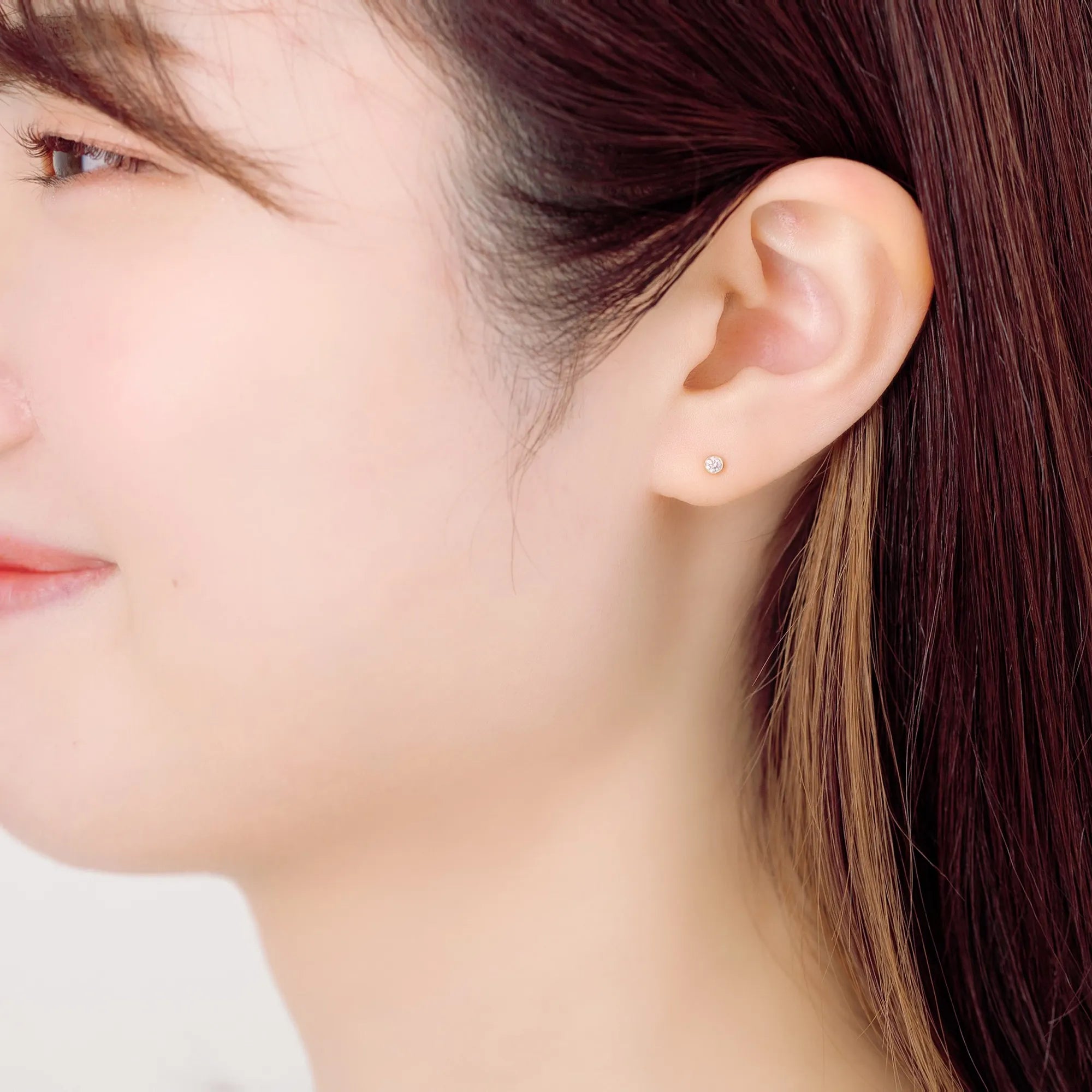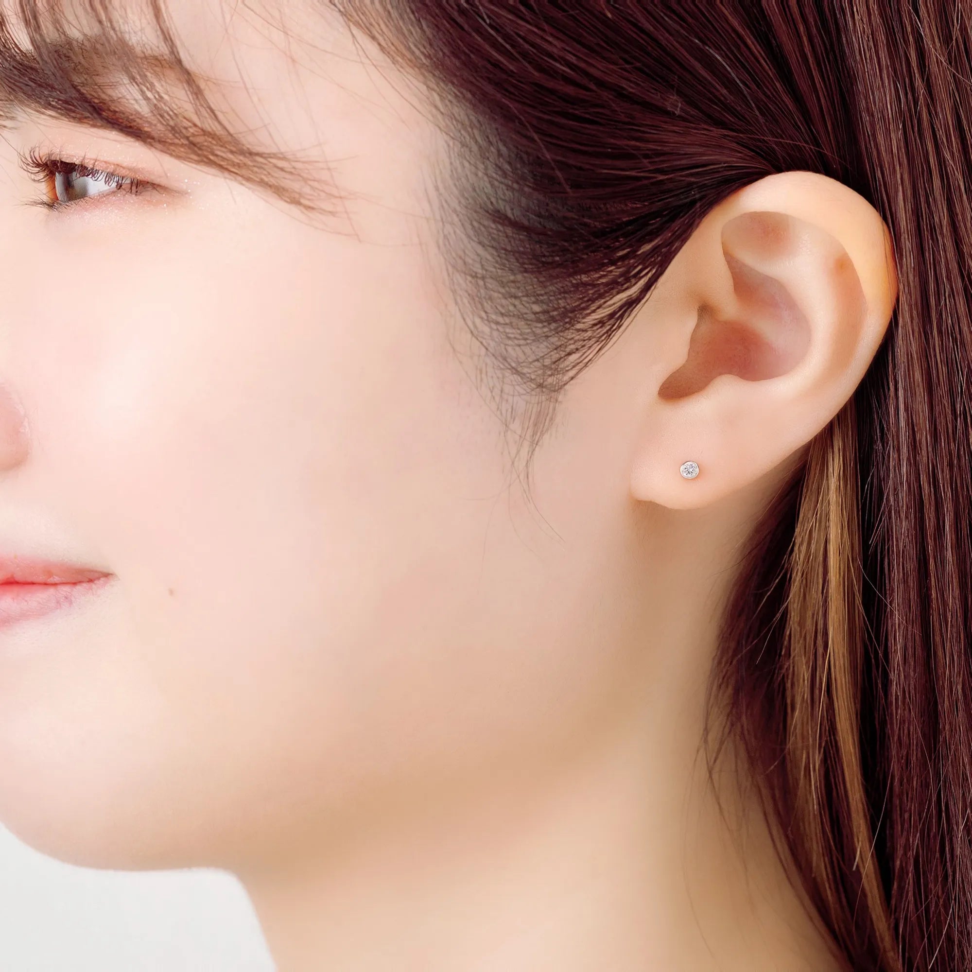 ラウンドブリリアントカットダイヤモンドをベゼルセッティングしたピアスです。