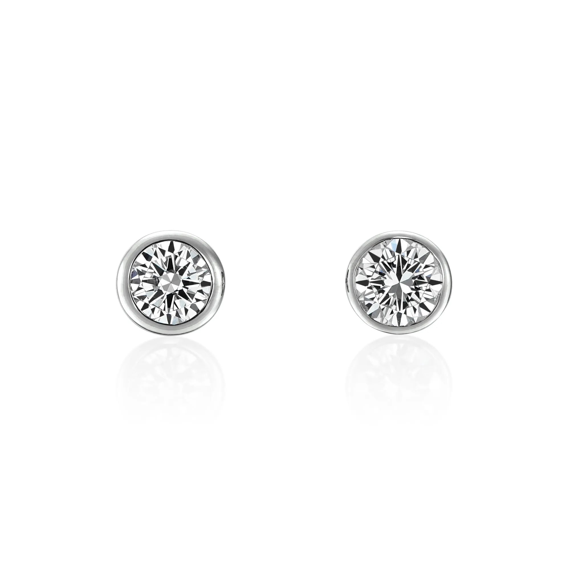 ラウンドブリリアントカットダイヤモンドをベゼルセッティングしたピアスです。