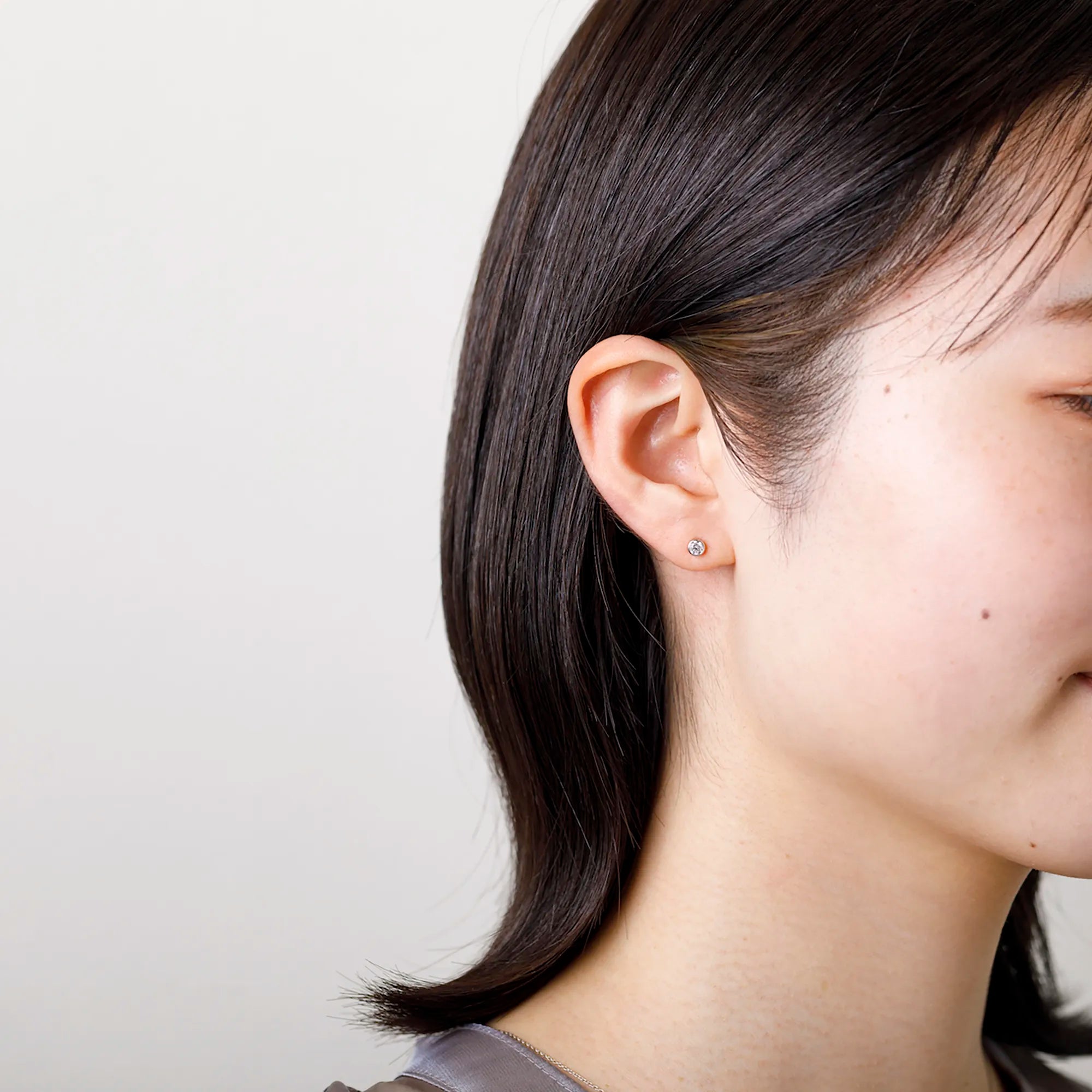大人の方の日常のジュエリー使いに選ばれることが多く、耳元でキラリと光るダイヤのピアスが清楚さを演出してくれます。年齢を問わずご支持を得ているダイヤモンドピアスです。