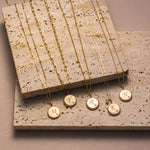 コインペンダントをより美しく引き立てるチェーンネックレスも数種類ラインナップしています。首元をスッキリ見せるタイプから、存在感を放つタイプまで、組み合わせ次第で装いの幅がぐっと広がります。